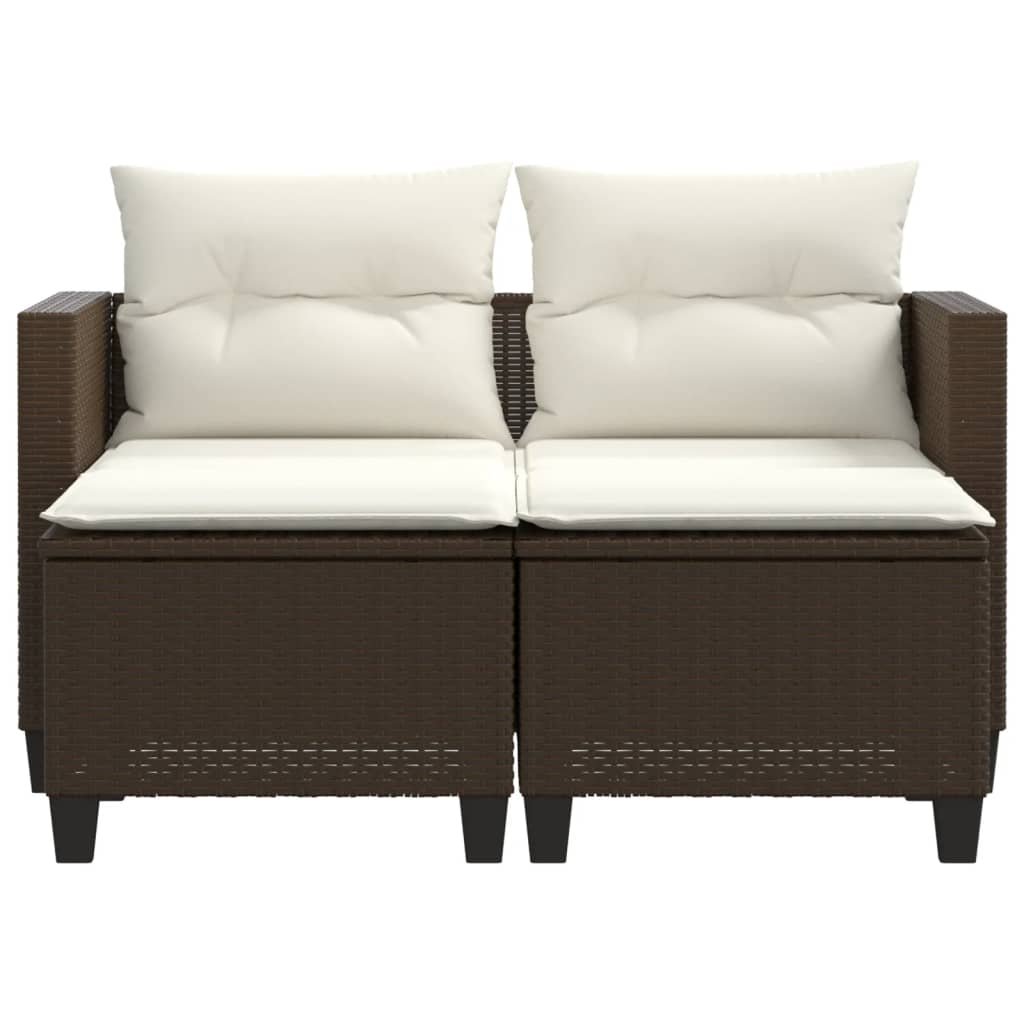 Zahradní pohovka 2místná s taburety hnědá polyratan 365792