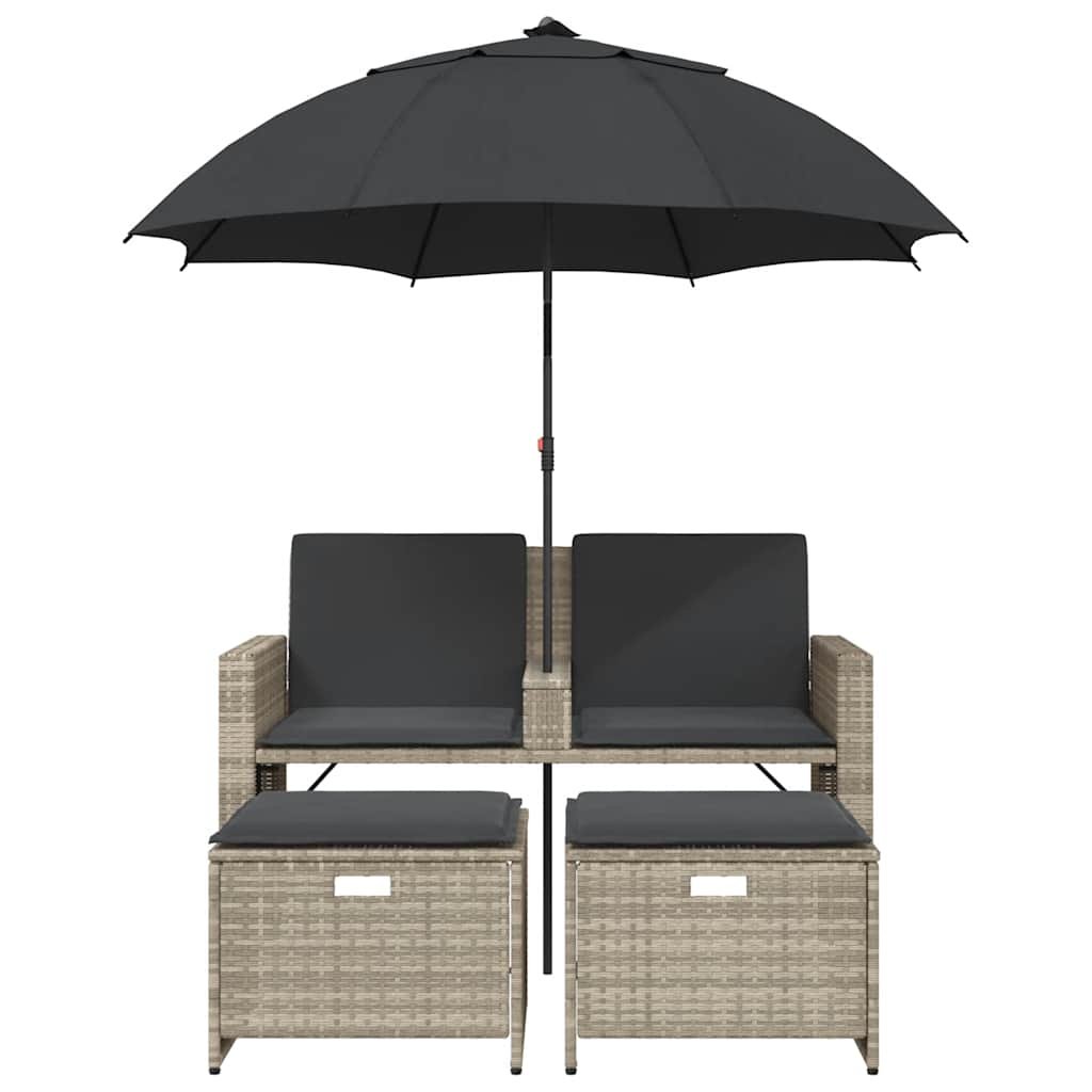 Zahradní pohovka 2místná se slunečníkem a taburety světle šedá 365888