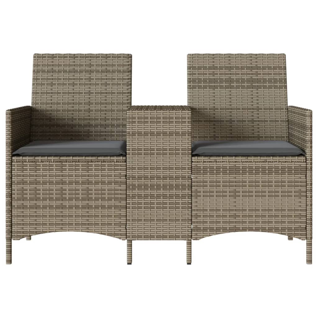 Zahradní pohovka 2místná se stolek a poduškami šedá polyratan 4003886