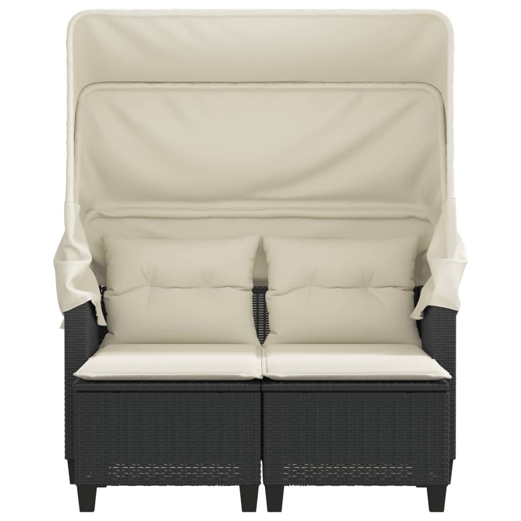 Zahradní pohovka 2místná se stříškou a taburety černá polyratan 365780