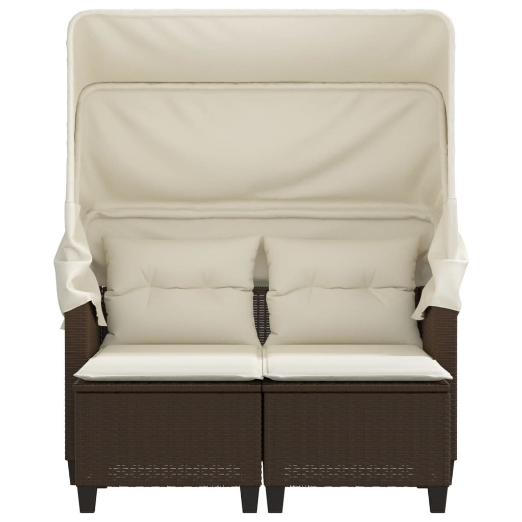 Zahradní pohovka 2místná se stříškou a taburety hnědá polyratan 365782