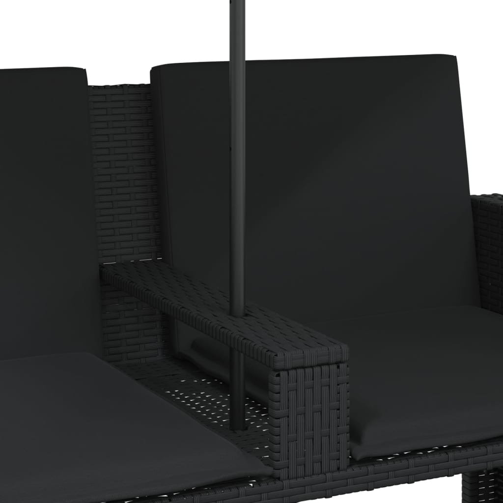 Zahradní pohovka 2místná slunečník a taburety černá polyratan 365883