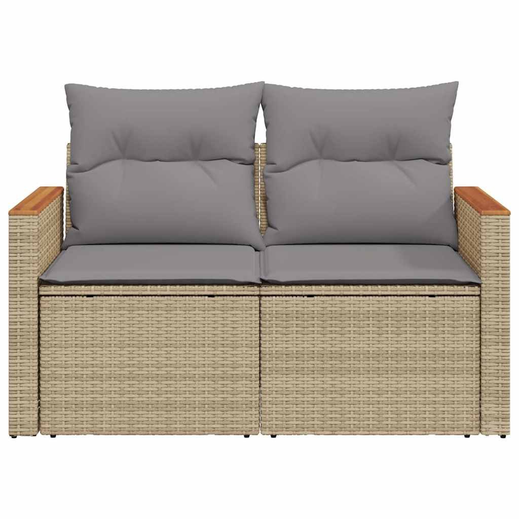 Zahradní pohovka s poduškami 2místná béžová polyratan 366109