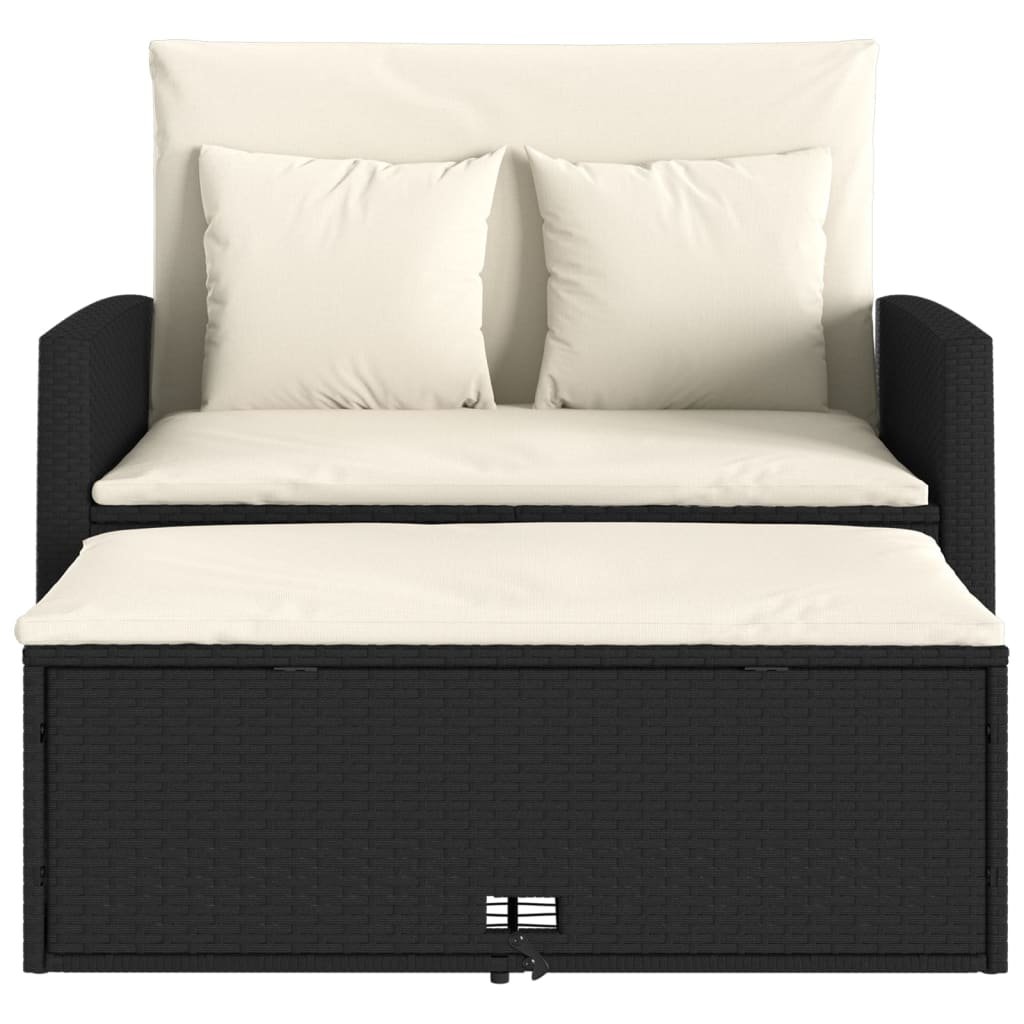 Zahradní pohovka s poduškami 2místná černá polyratan 365131