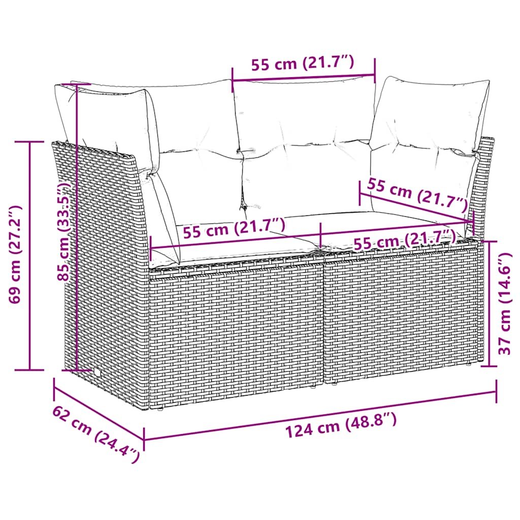 Zahradní pohovka s poduškami 2místná světle šedá polyratan 366176