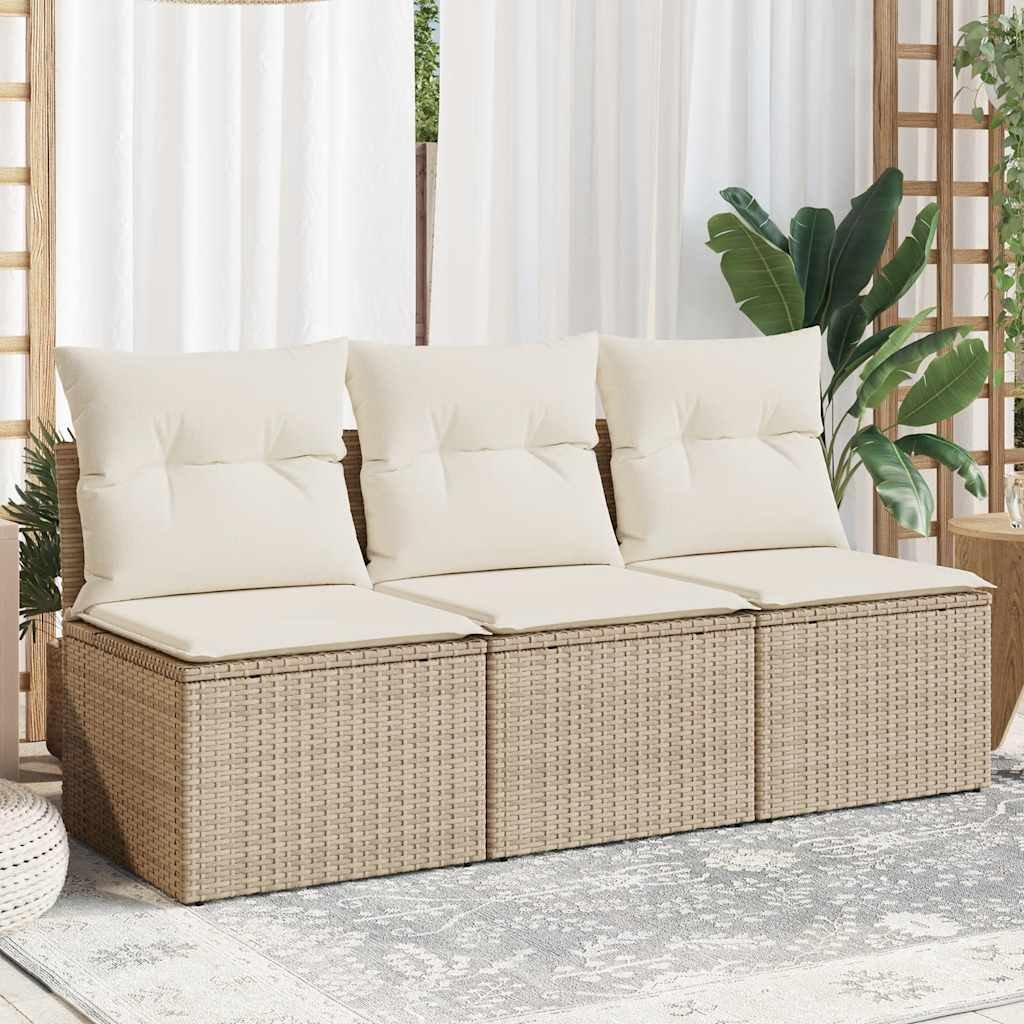 Zahradní pohovka s poduškami 3místná béžová polyratan 366077