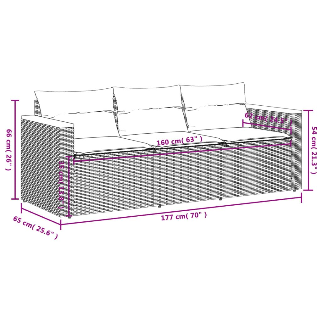 Zahradní pohovka s poduškami 3místná černá polyratan 365829