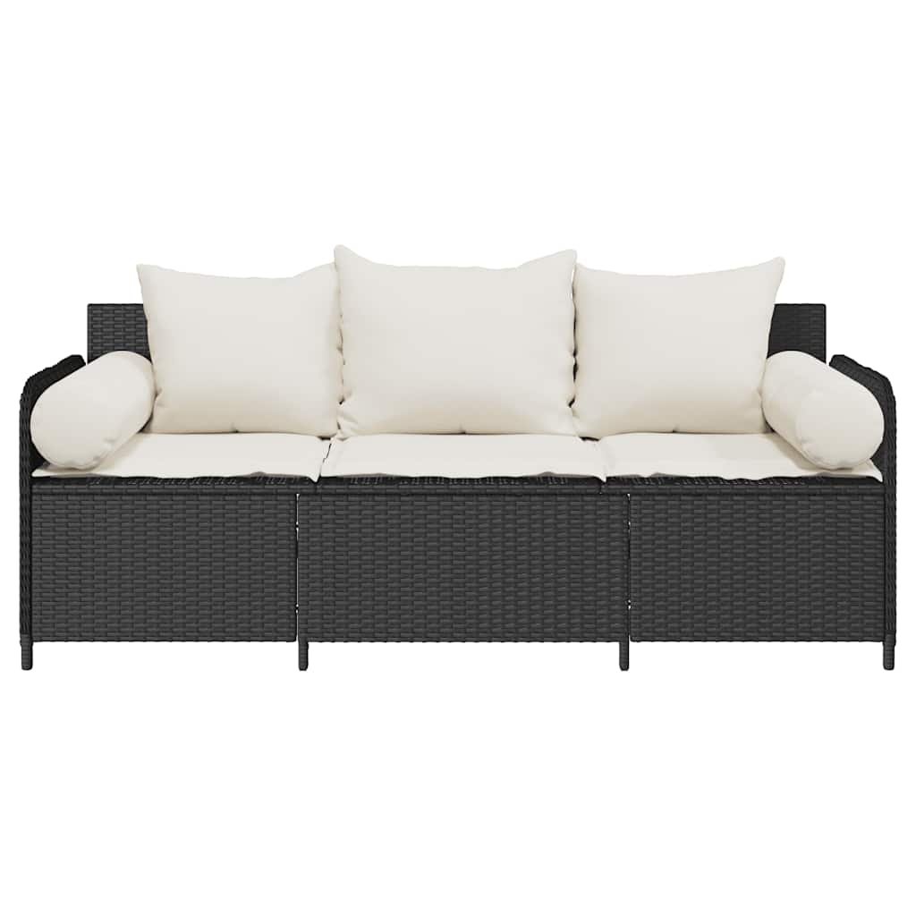Zahradní pohovka s poduškami 3místná černá polyratan 4104172