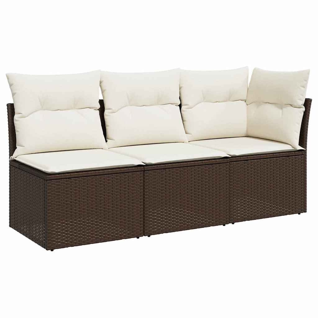 Zahradní pohovka s poduškami 3místná hnědá polyratan 366218
