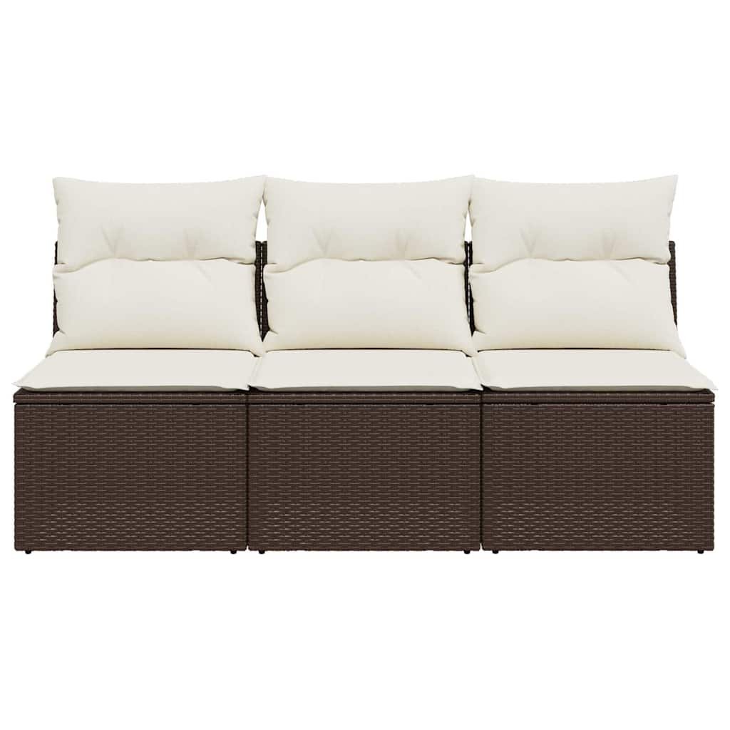 Zahradní pohovka s poduškami 3místná hnědá polyratan 366219