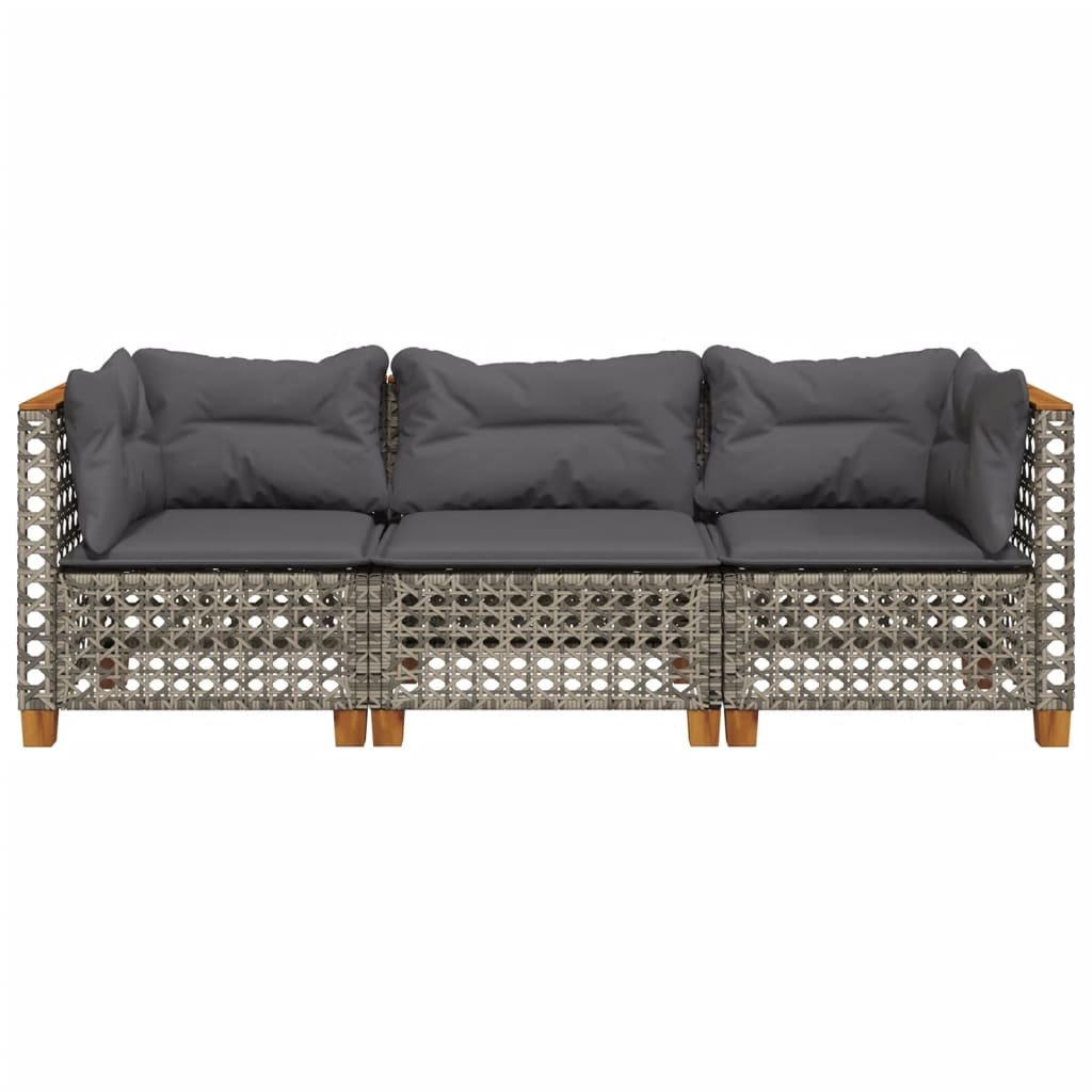 Zahradní pohovka s poduškami 3místná šedá polyratan 365939