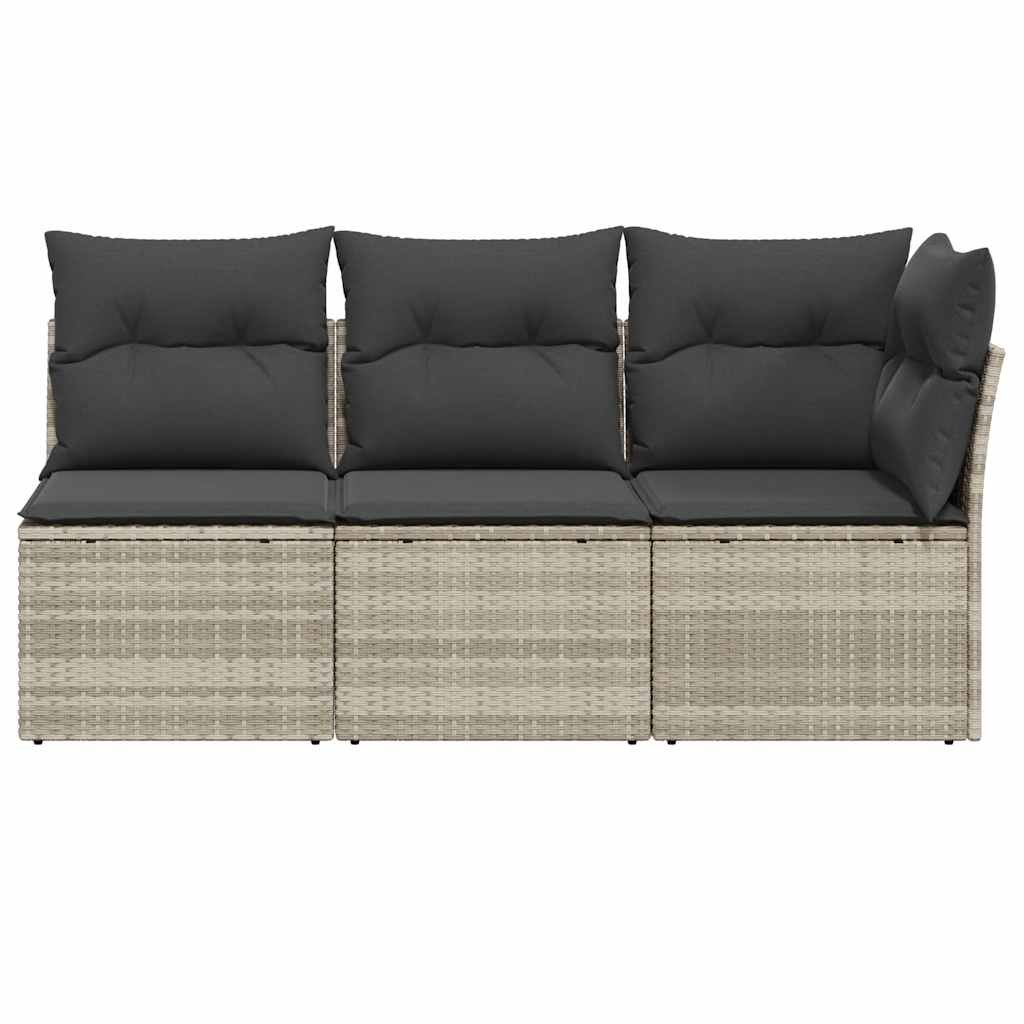 Zahradní pohovka s poduškami 3místná světle šedá polyratan 366193