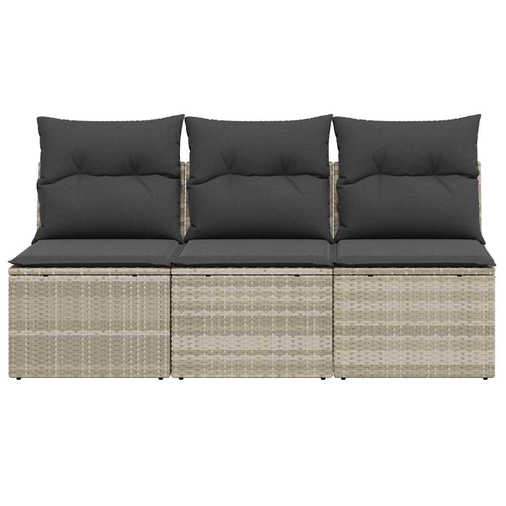 Zahradní pohovka s poduškami 3místná světle šedá polyratan 366194