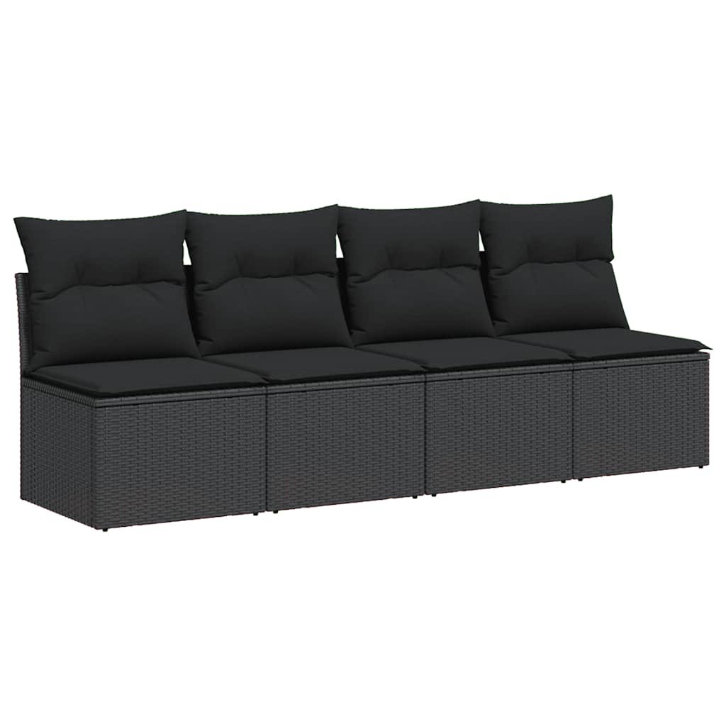 Zahradní pohovka s poduškami 4místná černá polyratan 365965