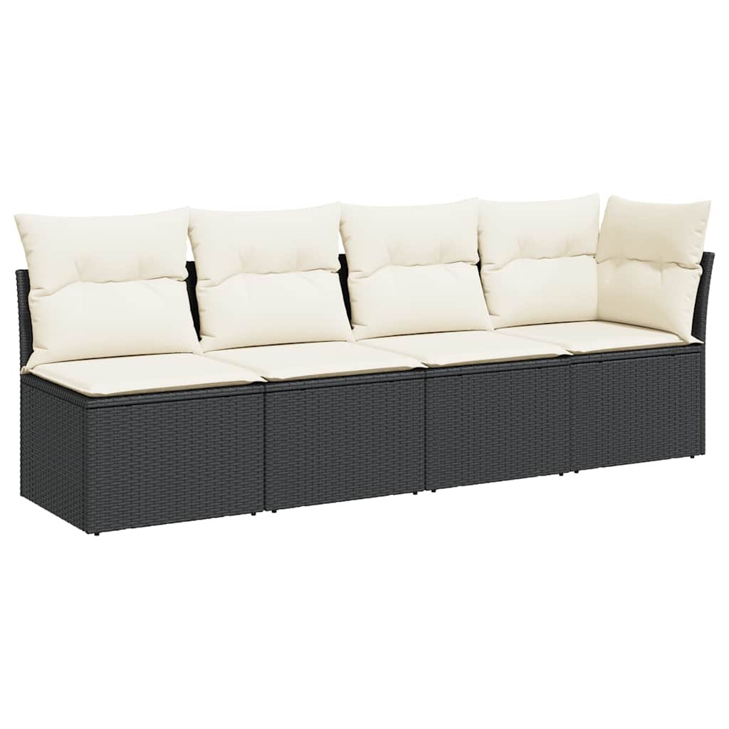 Zahradní pohovka s poduškami 4místná černá polyratan 365999