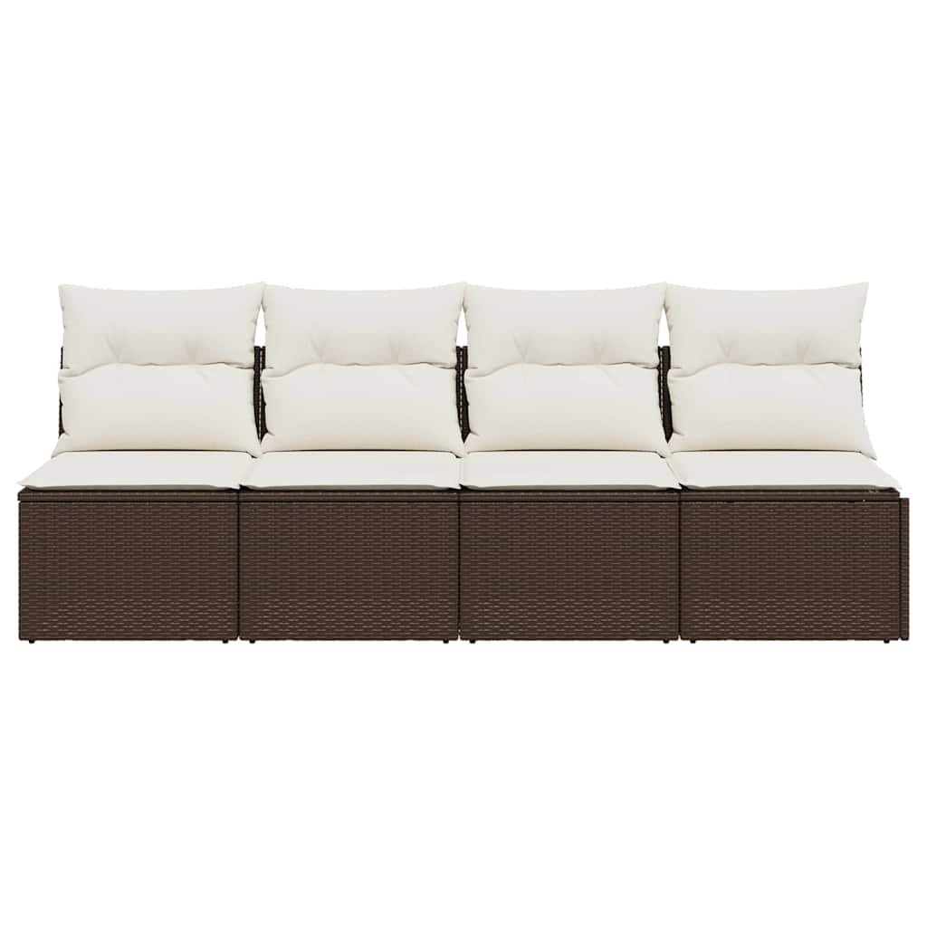 Zahradní pohovka s poduškami 4místná hnědá polyratan 366203