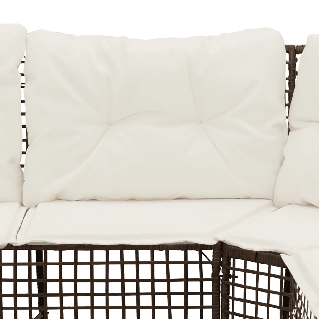 Zahradní pohovka s poduškami a podnožkou tvar L hnědá polyratan 365894