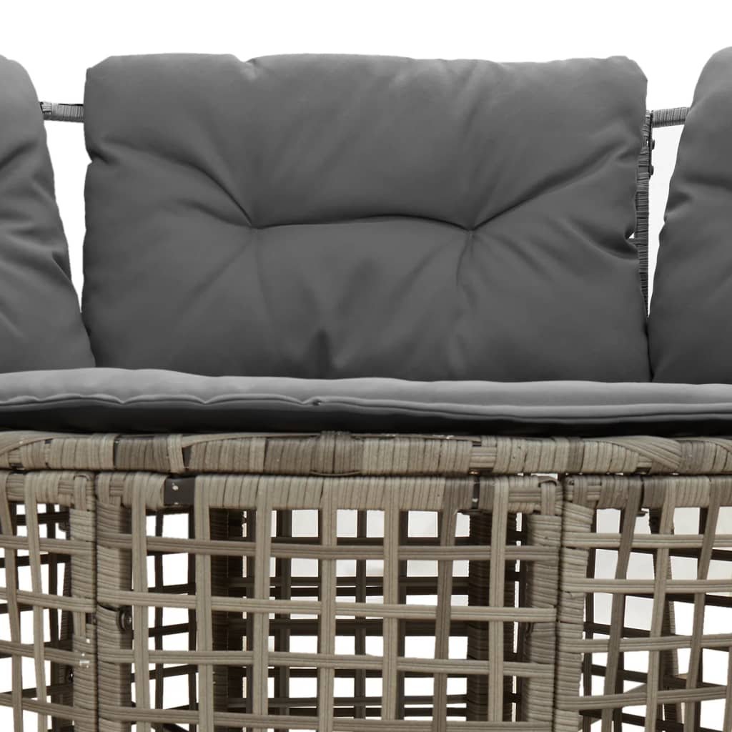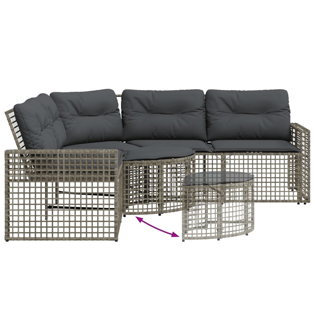 Zahradní pohovka s poduškami a podnožkou tvar L šedá polyratan 365895