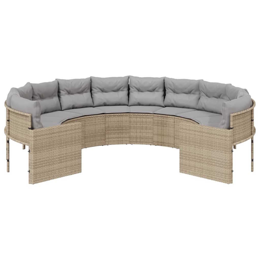Zahradní pohovka s poduškami kulatá béžová polyratan 3318533