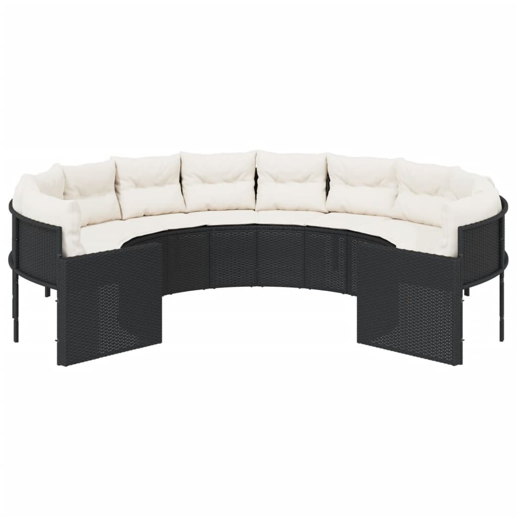 Zahradní pohovka s poduškami kulatá černá polyratan 3318531