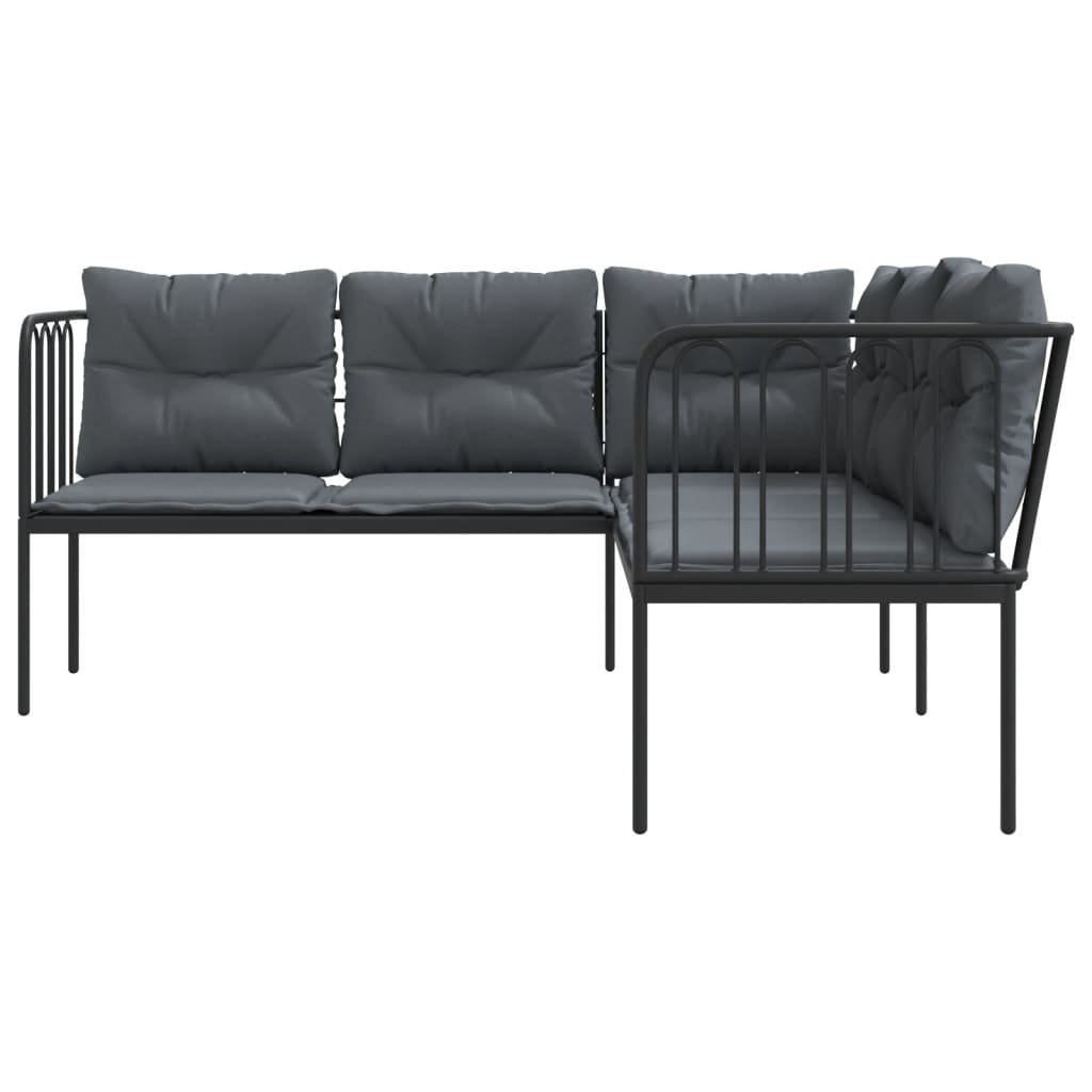Zahradní pohovka s poduškami tvar L černá ocel a textilen 4008108