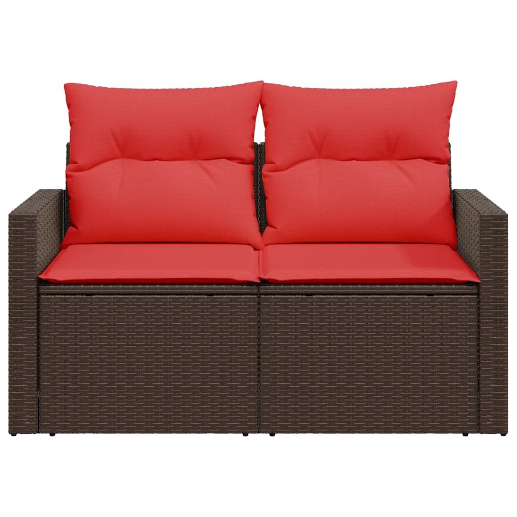 Zahradní pohovka s polštáři pro 2 osoby hnědá polyratan 366234