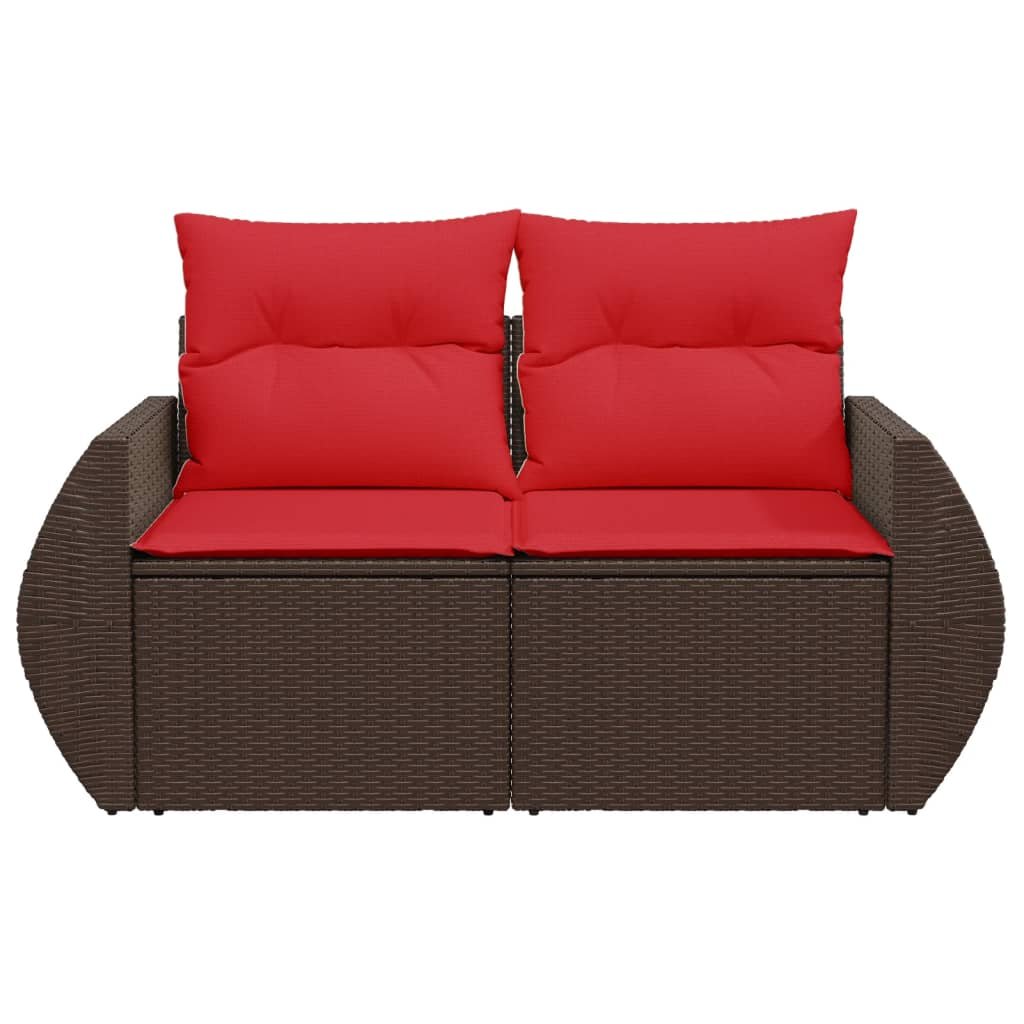 Zahradní pohovka s polštáři pro 2 osoby hnědá polyratan 366236