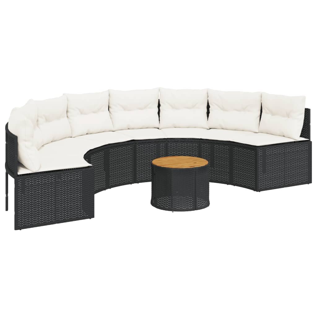 Zahradní pohovka se stolem a podušky půlkruhová černá polyratan 3318530