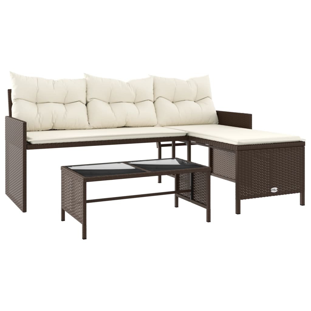 Zahradní pohovka ve tvaru L stolek a podušky hnědá polyratan 365573