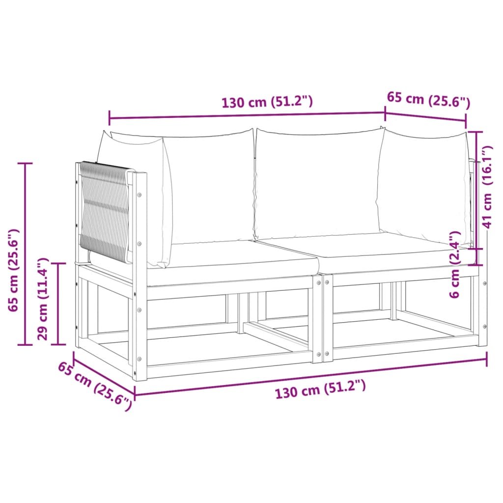 Zahradní pohovky rohové s polštáři 2 ks, akácie a provaz 3278853