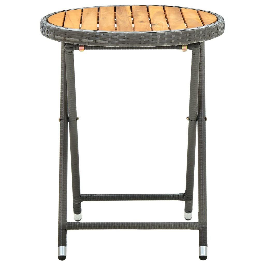 Ocelový rám s práškovým nástřikem je pokrytý klimaticky odolným PE ratanem s ochranou proti UV záření, proto vám tento stolek poskytne dlouhé roky spokojeného venkovního používání. Stolní deska je vyrobená z masivního akáciového dřeva, které je robustní a má dlouhou životnost. Pokud právě zahradní stolek nepoužíváte, můžete ho snadno sklopit a ušetřit tak místo.
