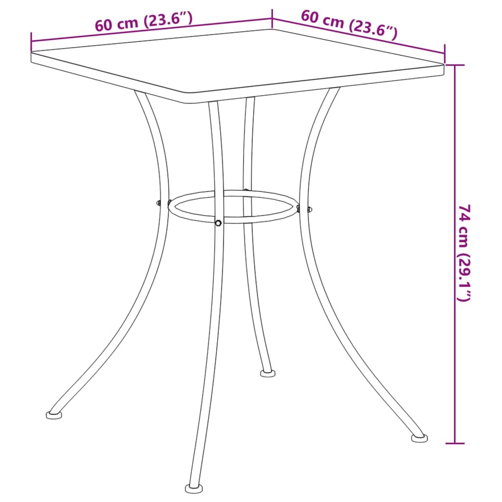 - Robustní a stabilní rám: Železný rám s práškovým nástřikem zajišťuje, že bistro stolek je pevný a stabilní pro každodenní venkovní používání.