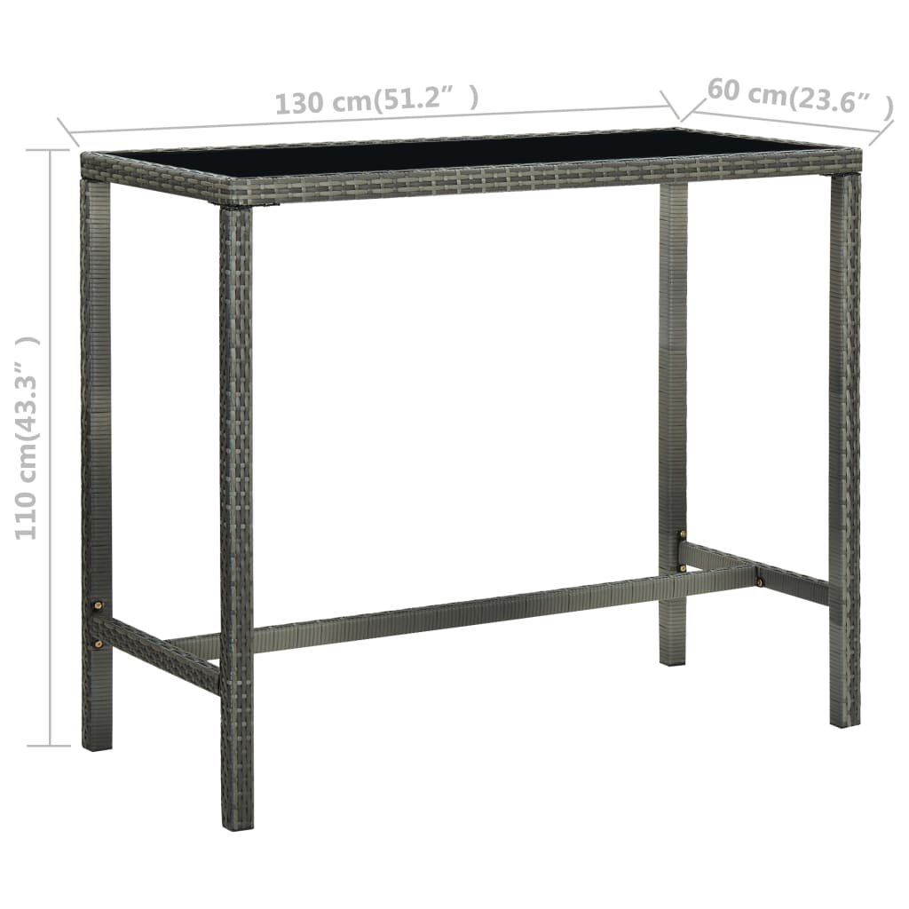 Zahradní barový stůl šedý 130 x 60 x 110 cm polyratan a sklo 313462
