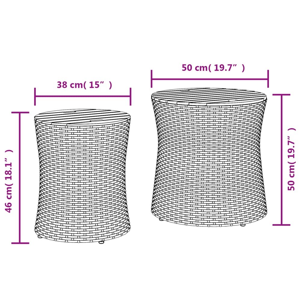 Zahradní odkládací stolky 2 ks dřevěná deska béžové polyratan 366290