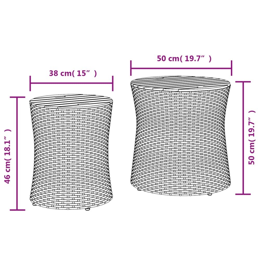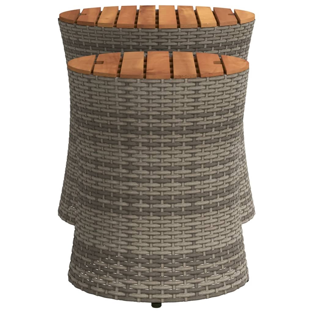 Zahradní odkládací stolky 2 ks dřevěná deska šedé polyratan 366289