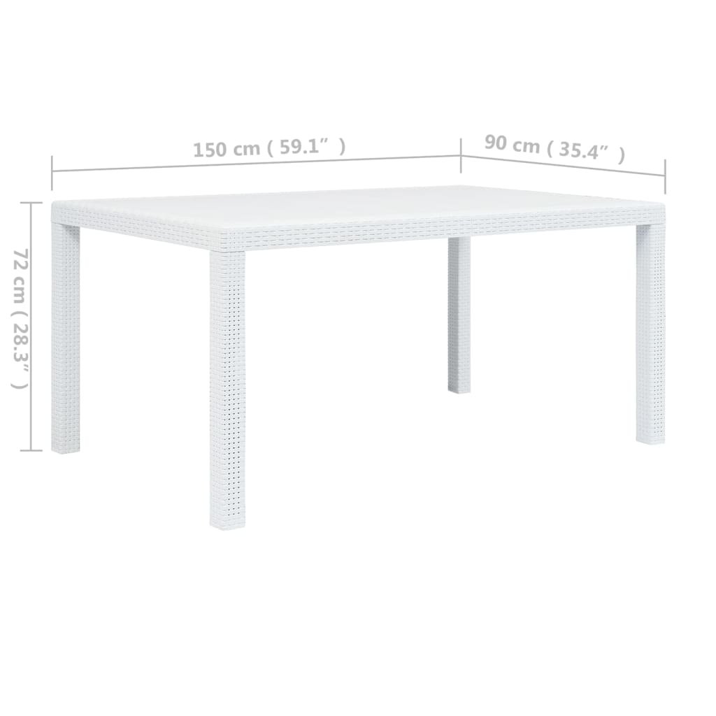 Zahradní stůl bílý 150x90x72 cm plast ratanový vzhled 45604