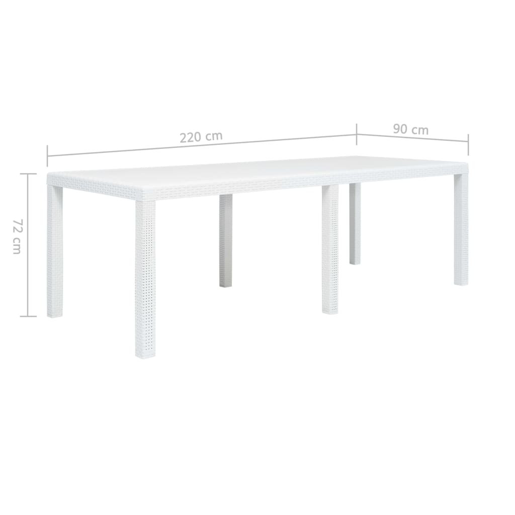 Zahradní stůl bílý 220 x 90 x 72 cm plast ratanový vzhled 45607