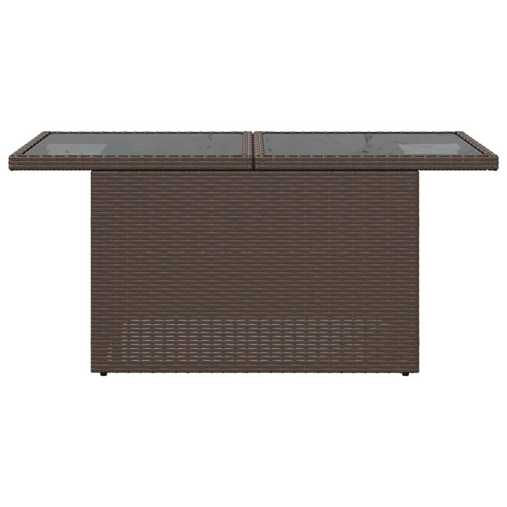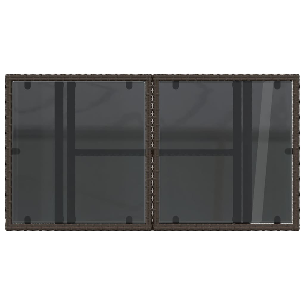 Zahradní stůl se skleněnou deskou hnědý 100x55x73 cm polyratan 366208