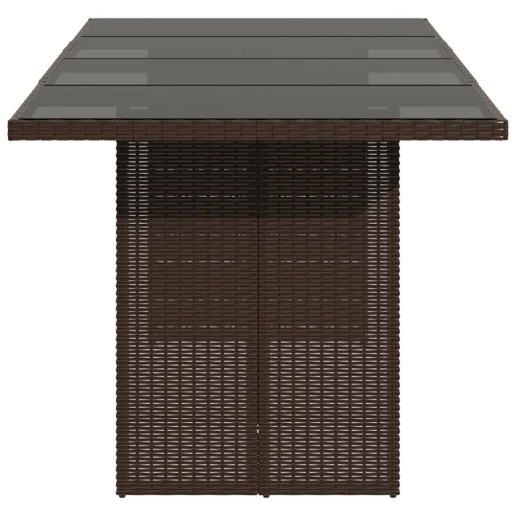 Zahradní stůl se skleněnou deskou hnědý 190x80x74 cm polyratan 365305