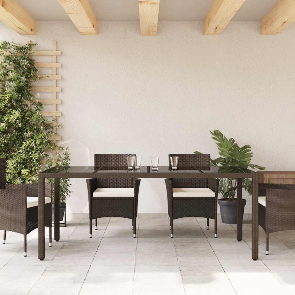 Zahradní stůl se skleněnou deskou hnědý 190x90x75 cm polyratan 365540