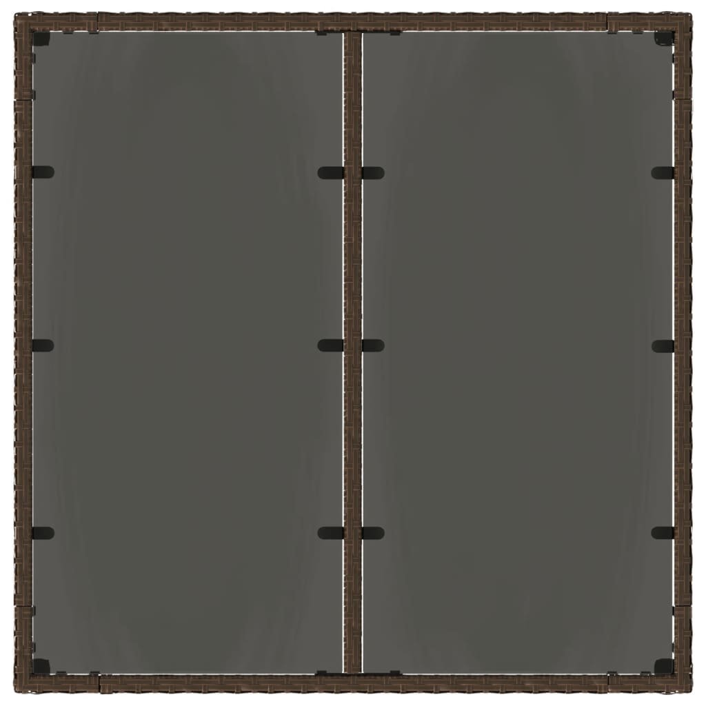 Zahradní stůl se skleněnou deskou hnědý 90x90x75 cm polyratan 365587