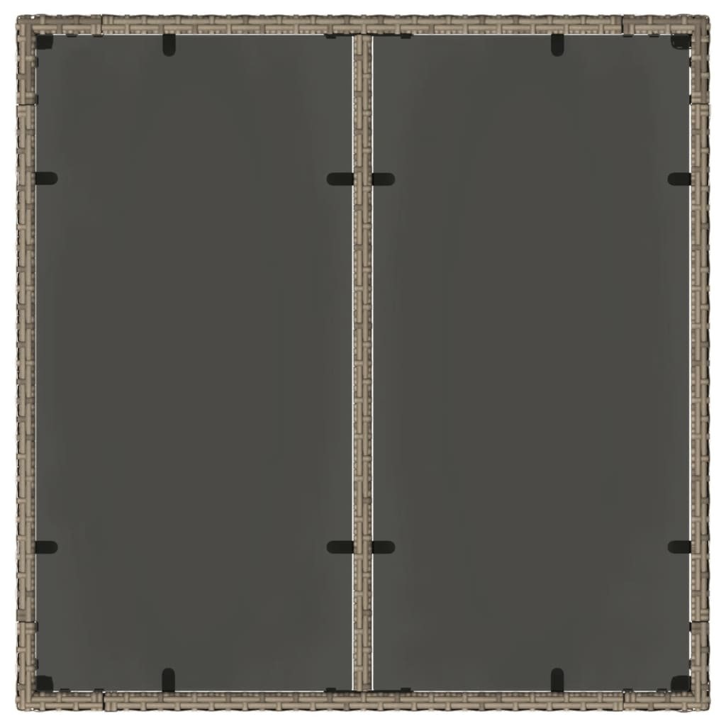 Zahradní stůl se skleněnou deskou šedý 90x90x75 cm polyratan 365526