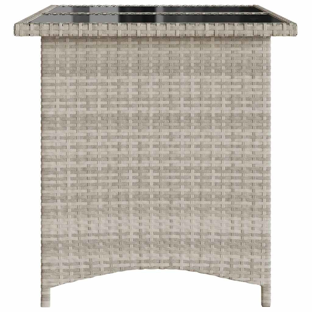 Zahradní stůl skleněná deska světle šedý 110x68x70 cm polyratan 366354