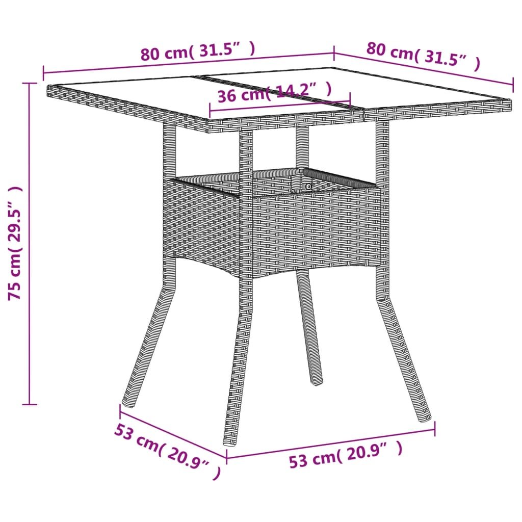 Zahradní stůl skleněná deska světle šedý 80x80x75 cm polyratan 368131