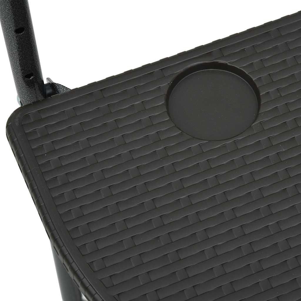 Pracovní deska z odolného plastu skvěle odolává povětrnostním vlivům a snadno se čistí. Její ratanový vzhled dodá vašemu balkónu přírodní kouzlo. Stůl s robustním ocelovým rámem je velmi stabilní. Výšku stolu lze navíc nastavit do 3 úrovní podle vašich potřeb.