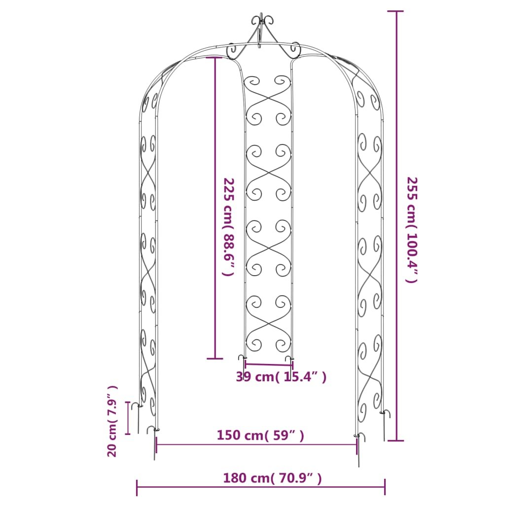 Zahradní oblouk černý Ø180 x 255 cm ocel 319351