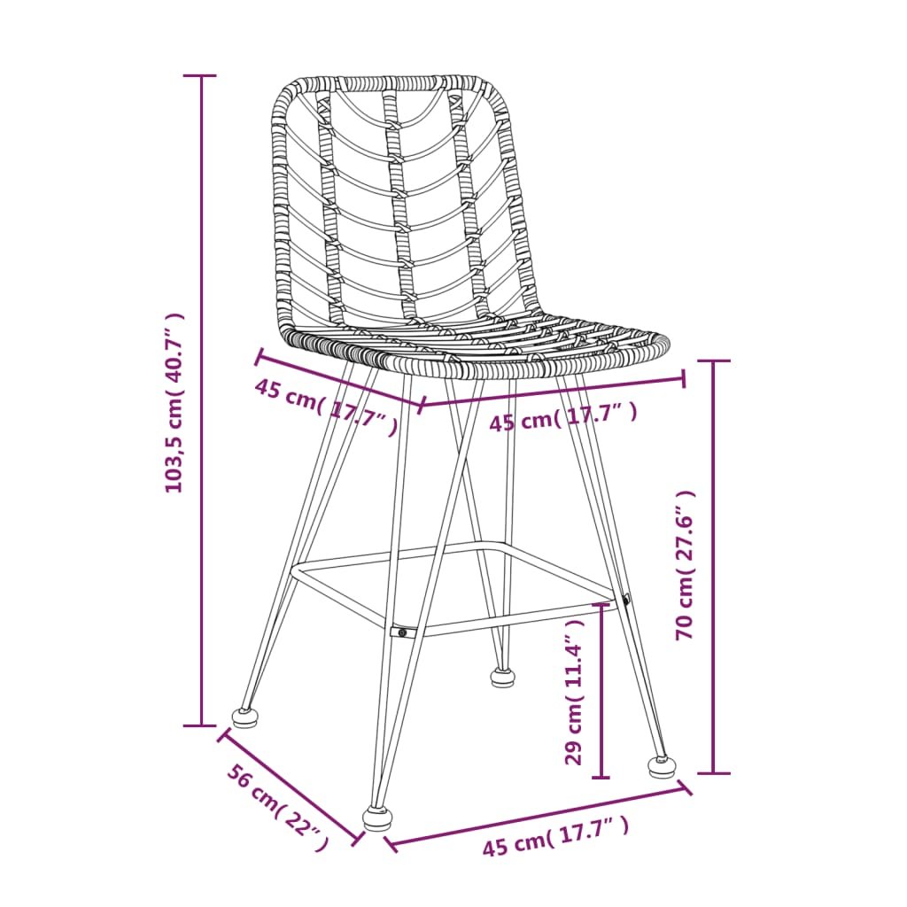 Barové stoličky 2 ks černé 45 x 56 x 103,5 cm PE ratan a ocel 319431