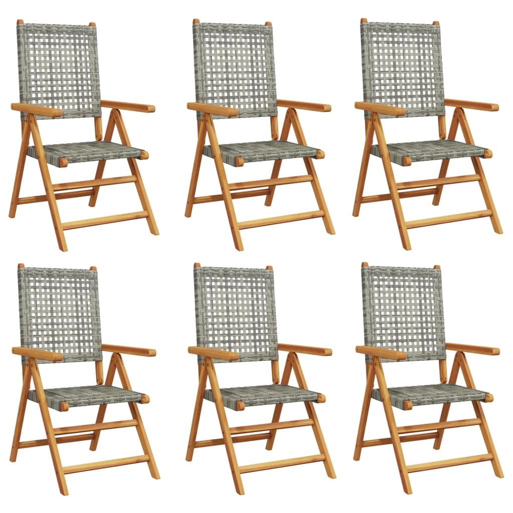 Polohovací zahradní židle 6 ks šedé polyratan a masivní dřevo 3214524
