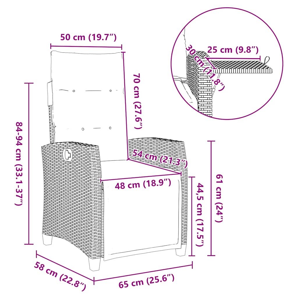 Polohovatelné zahradní křeslo s bočním stolkem šedá polyratan 4108276