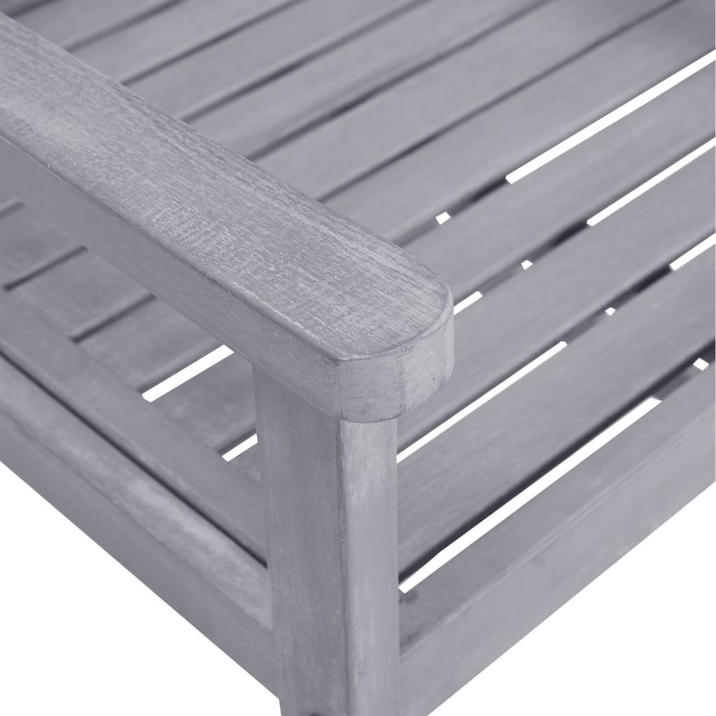 Tato sada zahradních židlí je vyrobená z masivního akáciového dřeva s šedou povrchovou úpravou, tvrdého dřeva s hustou kresbou. Masivní akáciové dřevo je schopné nést váhu a také perfektně odolává opotřebení. Tato dřevěná sada židlí je pevná, má dlouhou životnost a je odolná proti povětrnostním vlivům. Dřevěné nohy také zaručují excelentní stabilitu. Povrch židlí se snadno čistí vlhkým hadříkem.
